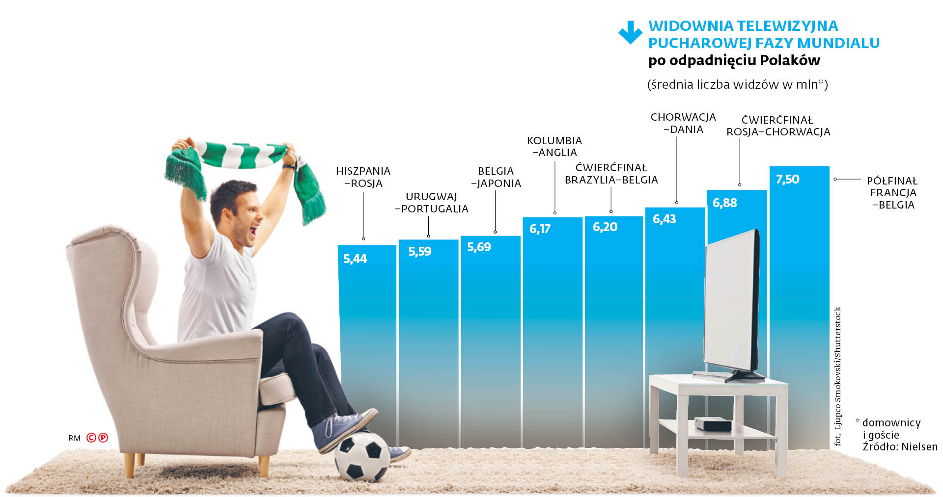 Widownia telewizyjna pucharowej fazy mundialu po odpadnięciu Polaków