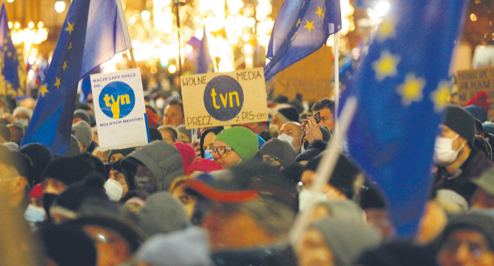 Właściciele TVN zapowiadają, że będą bronić swoich interesów i użyją do tego wszystkich środków prawnych (na zdj. protestujący w Warszawie)