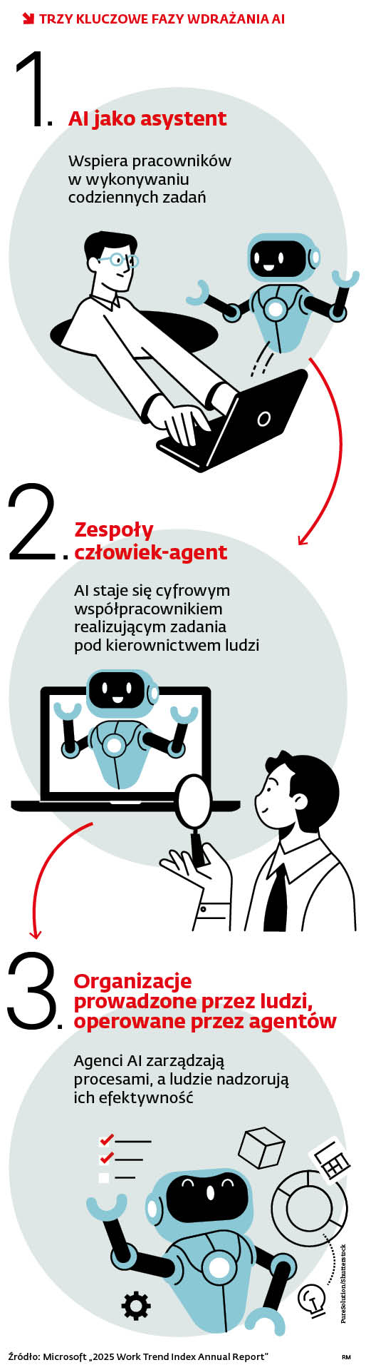 Raporty czołowych globalnych firm doradczych są jednoznaczne: inwestycje w narzędzia AI, w zasadzie we wszystkich branżach i obszarach działalności, nie tylko wydatnie zwiększają produktywność firm, lecz także dają im wyraźną przewagę na rynku. W ostatnim badaniu Deloitte aż ośmiu na dziesięciu z tysięcy menedżerów wysokiego szczebla przyznało, że spodziewa się wzrostu wydatków na AI. Z przeprowadzonego przez EY Polska badania „Jak polskie firmy wdrażają AI?” wynika z kolei, że w 2024 r. firmy analizowały potencjał sztucznej inteligencji, a dziś wprowadzają w życie konkretne rozwiązania.