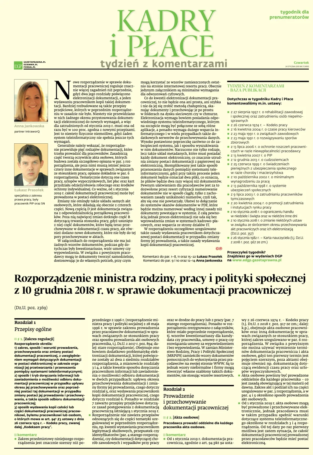Rozporządzenie ministra rodziny, pracy i polityki społecznej z 10 grudnia 2018 r. w sprawie dokumentacji pracowniczej